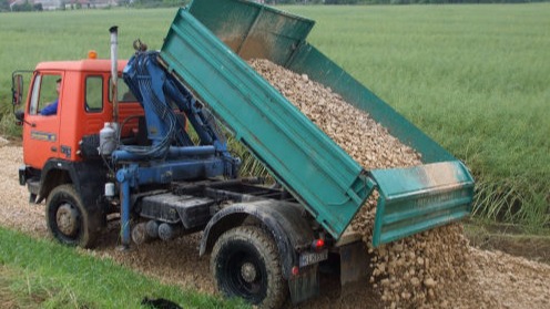 - ömlesztett, szóródó áru szállítása darus, billenős tehergépkocsival